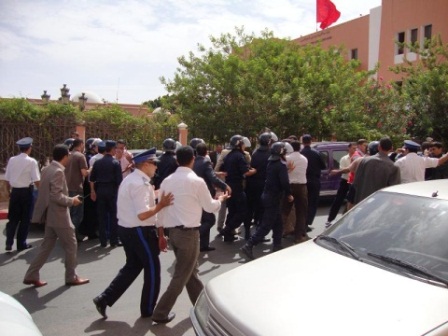 تدخلت قوات الأمن بشكل عنيف صبيحة يوم الخميس 22 شتنبر الجاري، لتفريق وقفة احتجاجية سلمية نظمها الأطر العليا الصحراوية المعطلةبالعيون. أمام مقر ولاية جهة العيون بوجدور الساقية الحمراء. للمطالبة بحقهم المشروع في التوظيف.
