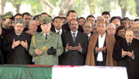 وأضافت قصاصة وكالة الأنباء أنه بعد ذلك٬ توجه الوفد المغربي إلى مقبرة “العالية” حيث ووري جثمان الفقيد الثرى٬ وبمجرد وصوله اكتشف الحضور البروتوكولي لوفد من البوليساريو كان يقوده محمد عبد العزيز. وأمام هذا الوضع انسحب الوفد المغربي على الفور قبل أن يتوجه إلى مطار الجزائر العاصمة حيث كان في وداعه٬ كما كان عليه الأمر عند وصوله٬ الوزير الأول الجزائري أحمد أويحيى.