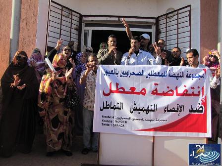 وتقول مجموعة النهضة في بيانها توصلت “صحراء 24 ” بنسخة منه، أنها من أجل مطالب عادلة ومشروعة تكفلها المواثيق والأعراف الدولية بالحق في الشغل، فإنها تتابع بقلق شديد التدهور الخطير الذي آلت إليه وضعية المعطلين الصحراويين بالعيون , فبعد تفريق جسم المعطل والإقصاء المتعمد والتهميش يضيف البيان تم سلب الحق في التوظيف المباشر للصحراويين والذي كان يعتبر حتى وقت قريب عرف محلي مما يؤشر على منعرج حقيقي إذ لابد من وقفة معطل واحد جسم واحد من أجل مطلب واحد ألا وهو التوظيف المباشر.