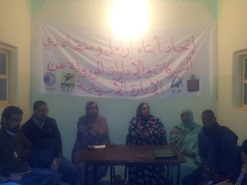 حيث عقد الجمع تحت تنظيم العنصر النسوي المنضوي تحت اللواء الاتحاد والمتكون من الأرامل واللواتي نددن بالحالة المزرية التي تعانيها أرملة متقاعدي الشركات والادارات الموروثة عن الشركة الاسبانية في ظل غياب أبسط الحقوق التي توفر الحد الدني للعيش الكريم لهذه الفئة التي تضررت من المستوى المتدني للمعاشات في ظل غلاء المعيشة حيث تصل معاناة بعض الأرامل الى 30 و 50 درهم في الشهر.