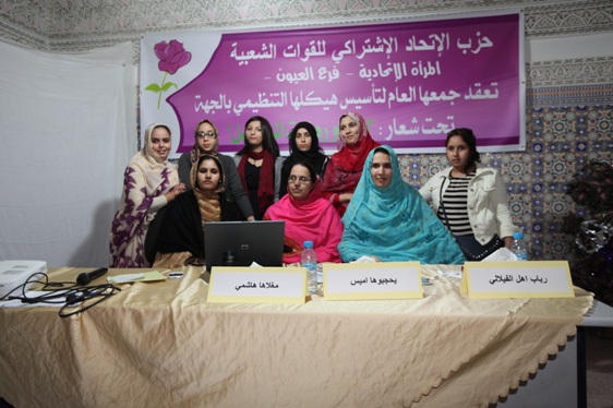 إنعقد الجمع العام تأسييسي للمرأة الاتحادية فرع العيون تحت شعار ” المرأة و رهانات المستقبل ” و ذلك يوم الأحد 16 فبراير 2014 بقاعة الشهيد عمر بنجلون بمقر حزب الاتحاد الاشتراكي للقوات الشعبية بالعيون بحضور مجموعة من نساء و أمهات المنطقة وتمت تلاوة أيات بينات من الدكر الحكيم, ثم تفضل أعضاء اللجنة التحضيرية بشرح الاستراتيجية العامة للمرأة الاتحادية وإبراز أهمية إنخراط المرأة في العمل السياسي و دورها في المجتمع وكانت هناك عدة مداخلات من طرف الحاضرين وفي الأخير تم إنتخاب أعضاء المكاتب المسيرة على الشكل التالي:
