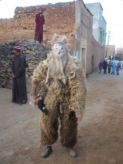 ويزخر المجتمع المغربي بعادات وتقاليد عديدة مرتبطة بعيد الأضحى منها عادة تراثية يطلق عليها “بوجلود” أو “السبع بو البطاين” ،وتقوم على لف أحد الأشخاص نفسه بجلود الماعز أو الخرفان ، ثم يطوف على الأهالي الذين يتصدقون عليه ببعض المال او جلود الأضاحي. وبعيد انها عادة تختفى تدريحيا.