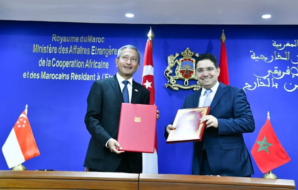 وقع وزير الشؤون الخارجية والتعاون الإفريقي والمغاربة المقيمين بالخارج، السيد ناصر بوريطة، ووزير الشؤون الخارجية لجمهورية سنغافورة، السيد فيفيان بالاكريشنان، اليوم الاثنين بالرباط، مذكرة تفاهم تتعلق بالتعاون بموجب المادة 6 من اتفاق باريس، وكذا رسالة نوايا بين وزارتي شؤون خارجية البلدين.