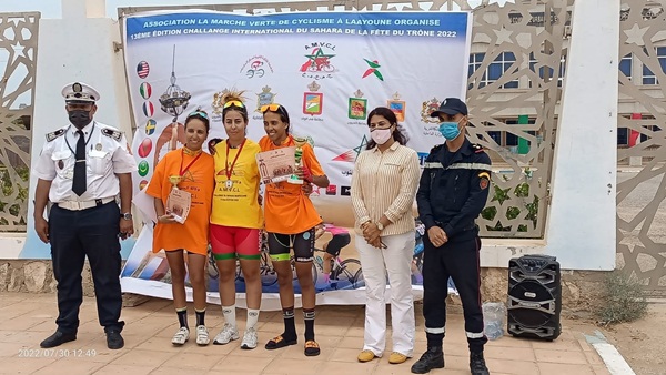 اختتم صباح يوم السبت 30 يوليوز الجاري ، بالموازاة مع الاحتفالات بعيد العرش العلوي المجيد ، منافسات النسخة الثالثة عشرة من لحاق الصحراء الدولي النسوي للدراجات ، بمشاركة 40 مشارك من مختلف الأندية الوطنية و كذا مشاركة أجنبية خصوصا من إسبانيا .