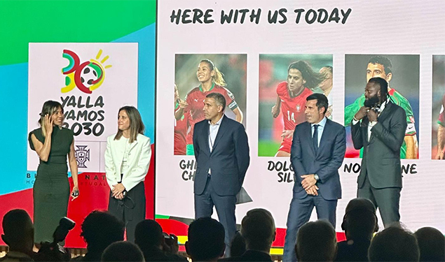وتميز حفل الإعلان عن الشعار الرسمي الخاص بملف الترشح المشترك بين المغرب وإسبانيا والبرتغال لاستضافة بطولة كأس العالم 2030، الذي يحمل عبارة “يالا فاموس 2030″، أيضا بتقديم الركائز والشعار اللفظي الخاصين بالملف الثلاثي، إلى جانب الموقع الإلكتروني والفيديو الرسمي وصفحات التواصل الاجتماعي.