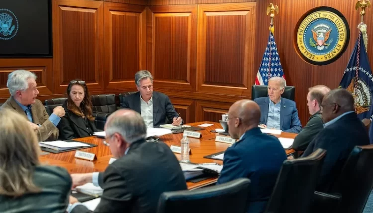 والتقى بايدن مع مسؤولين في غرفة العمليات بالبيت الأبيض، وهو مركز لإدارة الأزمات في الجناح الغربي، وكان من بينهم وزير الخارجية أنتوني بلينكن ووزير الدفاع لويد أوستن ومدير المخابرات المركزية وليام بيرنز ومديرة المخابرات الوطنية أفريل هينز ومستشار الأمن القومي بالبيت الأبيض جيك سوليفان ومسؤولين آخرين.