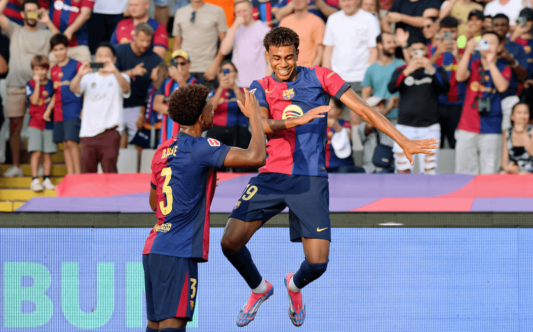 افتتح برشلونة التسجيل بعد 24 دقيقة بفضل نجمه الصاعد بطل أوروبا لامين جمال الذي سدد بقدمه اليسرى كرة قوية حولها ليكيو برأسه خادعا حارس مرماه، قبل أن يدرك الضيوف التعادل من ركلة جزاء في الدقيقة 42 عبر أويهان سانسيت.
