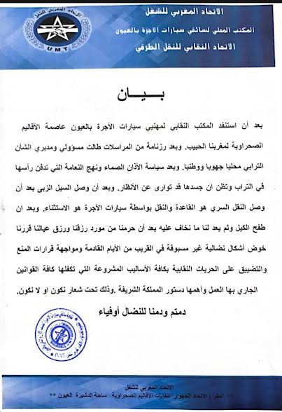 احتجاج سيارات الأجرة بالعيون بسبب النقل السري أخبار الصحراء إدارة الموقع نشر في 22 سبتمبر 2024 الساعة 15 و 46 دقيقة قرر المكتب المحلي لسائقي سيارات الاجرة بالعيون المنضوي تحت لواء الاتحاد المغربي للشغل UMT النقابة الممثلة لقطاع سيارات الأجرة من الصنف الثاني بالعيون التصعيد في طريقة الاحتجاج. مشاركة بفايسبوكFacebookFacebook مشاركة بتويترTwitterTwitter مشاركة بواتسابWhatsAppWhatsApp Share to ارسال ايميلEmailEmail مشاركة بلينكدانLinkedInLinkedIn مشاركة بمسنجرMessengerMessenger طباعةPrintطباعة رابط المشاركة : احتجاج سيارات الأجرة بالعيون بسبب النقل السري