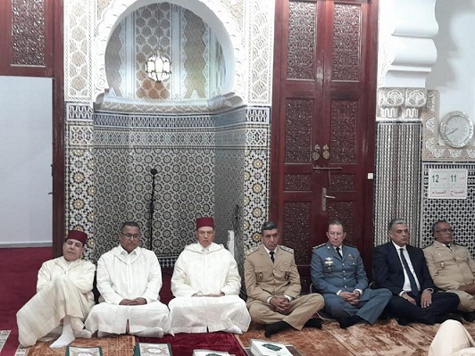 وذلك بحضور المندوب الجهوي و الاقليمي لوزارة الأوقاف والشؤون الإسلامية ، ورؤساء المصالح العسكرية و السلطات المحلية ، الأمنية و ورؤساء المصالح الداخلية و الخارجية و منتخبين و ممثلي المجتمع المدني ،وائمة وخطباء المساجد وعدد من الفقهاء وجموع المصلين .
