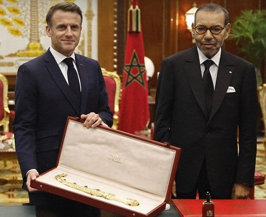 وجرى تسليم هذه الهدية التذكارية عقب التوقيع على إعلان الشراكة الاستراتيجية الاستثنائية بين الملك محمد السادس وإيمانويل ماكرون.