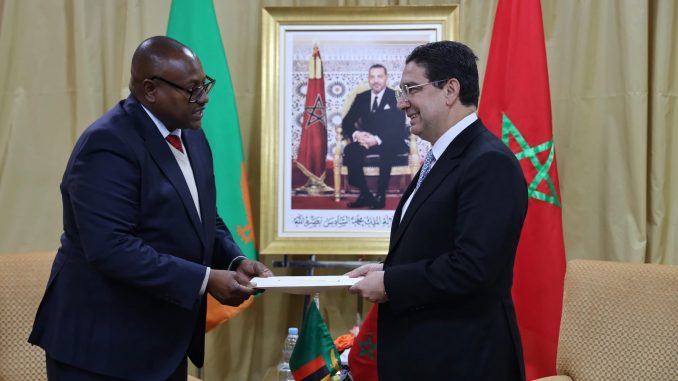 استقبل وزير الشؤون الخارجية والتعاون الإفريقي والمغاربة المقيمين بالخارج، ناصر بوريطة، اليوم الجمعة بالعيون، وزير الشؤون الخارجية والتعاون الدولي الزامبي، مولامبو هايمبي، حاملا رسالة خطية إلى صاحب الجلالة الملك محمد السادس، من رئيس جمهورية زامبيا، السيد هاكايندي هيشيليما.