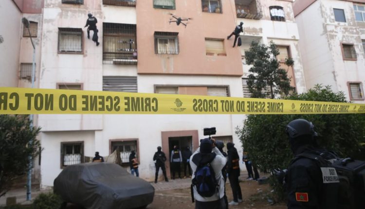وقد نُفذت العملية الأمنية في موقعين مختلفين داخل منطقتي تجزئة العمران وتجزئة الأمل بحي الوحدة، بمشاركة واسعة من عناصر القوة الخاصة التابعة للمديرية العامة لمراقبة التراب الوطني، بتنسيق مع الدرك الملكي وتقنيي الكشف عن المتفجرات والفرق السينوتقنية، إلى جانب دعم جوي بمروحية متخصصة في المراقبة والرماية الدقيقة.