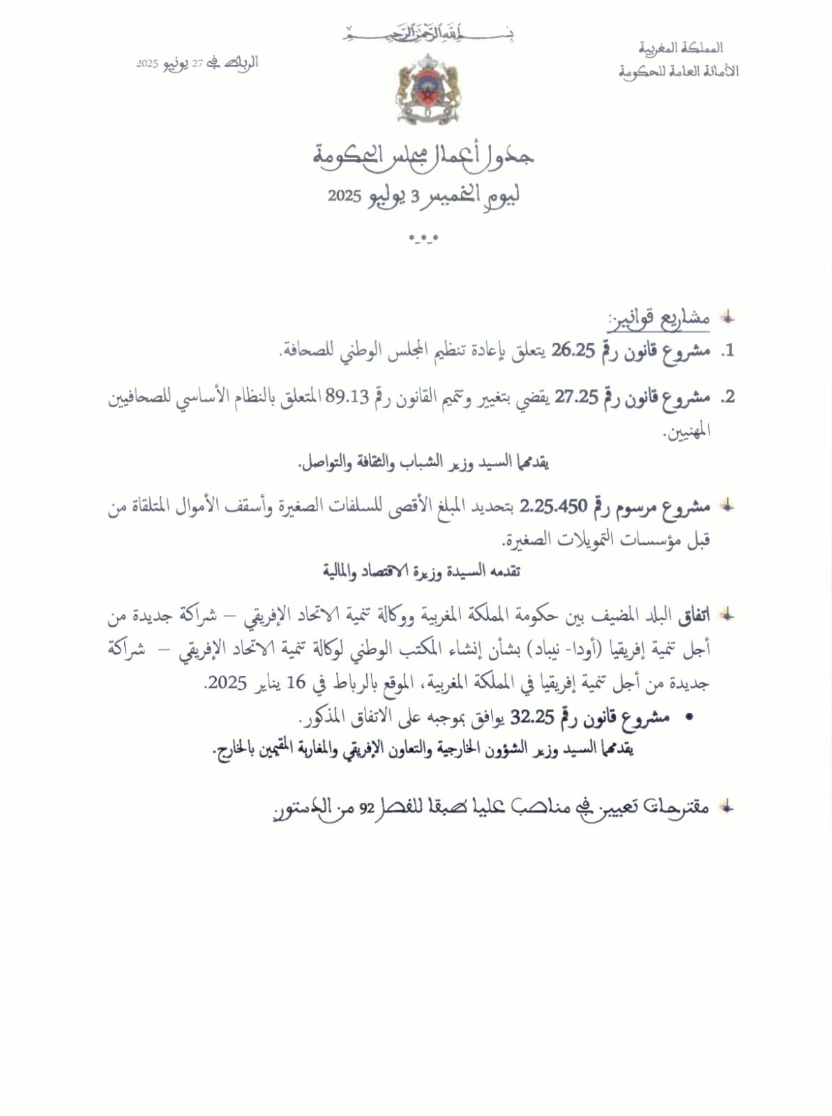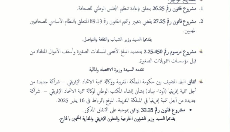 من المرتقب أن يعقد مجلس الحكومة، يوم غد الخميس، جلسة خاصة للنظر في مشروع قانون جديد يهدف إلى إعادة تنظيم المجلس الوطني للصحافة، في خطوة تُعدّ مراجعة جذرية للبنية القانونية والتنظيمية للمهنة.