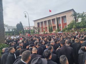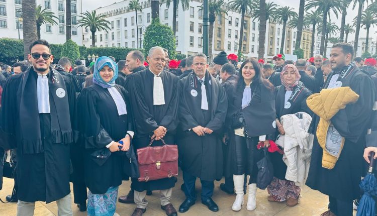 المحامون الذين التحفوا بذلاتهم السوداء، رفعوا شعارات من قبيل “صامدون صامدون.. للمشروع رافضون”، واعتبروا المشروع غير دستوري، وأكدوا ألا محاكمة عادلة دون حصانة حقيقية للمحامي، وأن المحامي شريك في العدالة لا تابع، ونددوا بالردة التشريعية.