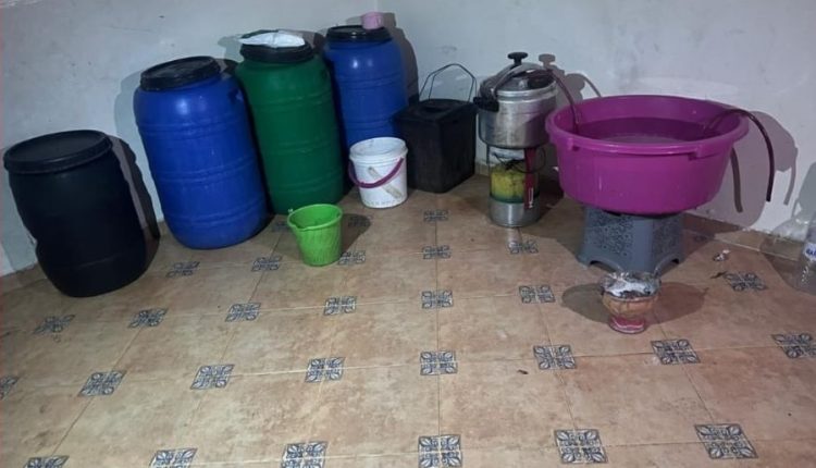 وجرى توقيف المشتبه فيه الأول بمدارة الهدى بحي الحِجري بمدينة العيون، متلبسا بحيازة خمس لترات من مسكر الماحيا، قبل أن تفضي الأبحاث إلى تحديد مكان مزودته بالمسكر بحي الأمل، حيث أسفر تفتيش مسكنها عن ضبط معمل تقليدي لتقطير المسكر ومعداته، بالإضافة إلى حجز 240 لترا من المواد الأولية المخمرة معبأة في براميل، وعشر لترات من المسكر الصافي الجاهز للترويج.