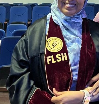 كما نالت شهادة الدكتوراه في “علوم التربية والرقمنة والتواصل” من كلية الآداب والعلوم الإنسانية بجامعة ابن زهر بأكادير، بميزة مشرف جدًا مع التوصية بالطبع، وهي أعلى ميزة تمنح في سلك الدكتوراه.