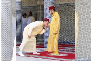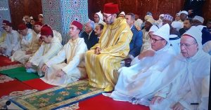بعد ذلك، غادر جلالة الملك المسجد عائدا إلى القصر الملكي وسط هتافات المواطنات والمواطنين الذين حجوا بكثافة، في هذا اليوم الأغر، للتعبير عن خالص متمنياتهم بموفور الصحة والعافية لجلالة الملك وتجديد التأكيد على ارتباطهم الوثيق بشخص جلالته وبالعرش العلوي المجيد، بينما كانت طلقات المدفعية تدوي تعبيرا عن البهجة بحلول المناسبة السعيدة.
