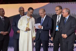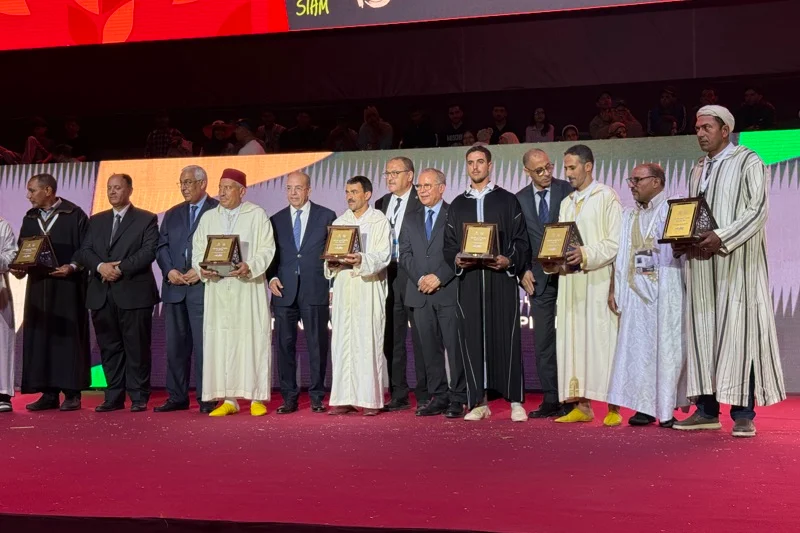 أشرف أحمد البواري، وزير الفلاحة والصيد البحري والتنمية القروية والمياه والغابات، على تتويج الفائزين في مباريات انتقاء أفضل رؤوس الماشية ضمن فعاليات الدورة الثامنة عشرة للملتقى الدولي للفلاحة بمكناس، في محطة أبرزت غنى الرصيد الحيواني الوطني وجودة السلالات المعروضة.